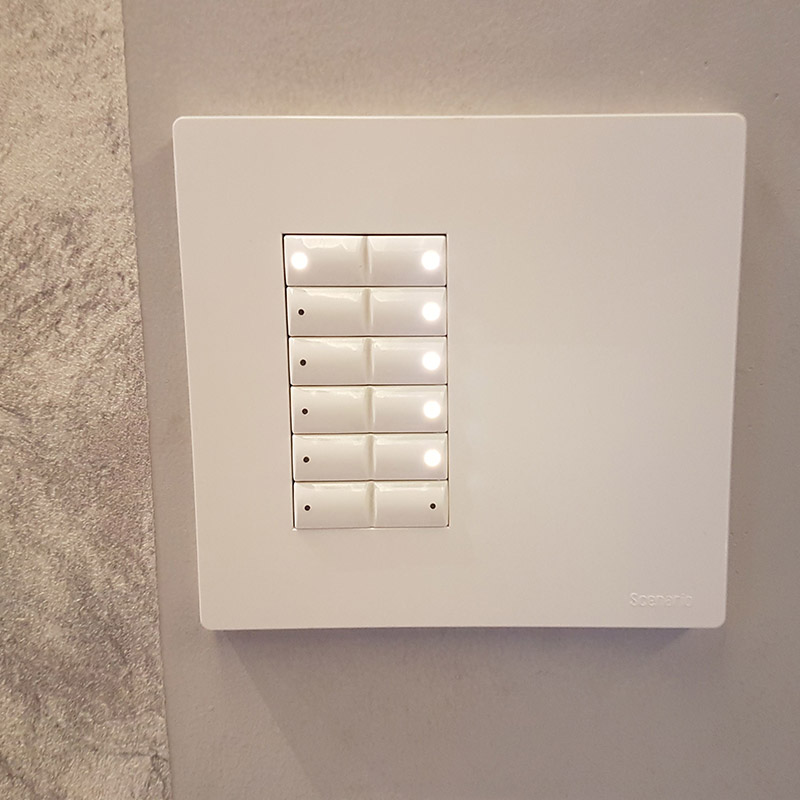 Devido à sua capacidade de integração com vários sistemas, a automação também pode ser aplicada em prédios inteiros. Em um hotel, por exemplo, pode controlar desde a iluminação da fonte externa na entrada até cenas pré-programadas nos apartamentos, por exemplo: O usuário pode ajustar cenas diferentes para o mesmo ambiente, de acordo com suas necessidades. Com apenas um toque no keypad, ele aciona as configurações de iluminação salvas para o jardim ou a piscina. Também pode programar eventos em horários previamente determinados, como por exemplo, acionar o motor da piscina ou a irrigação do jardim.