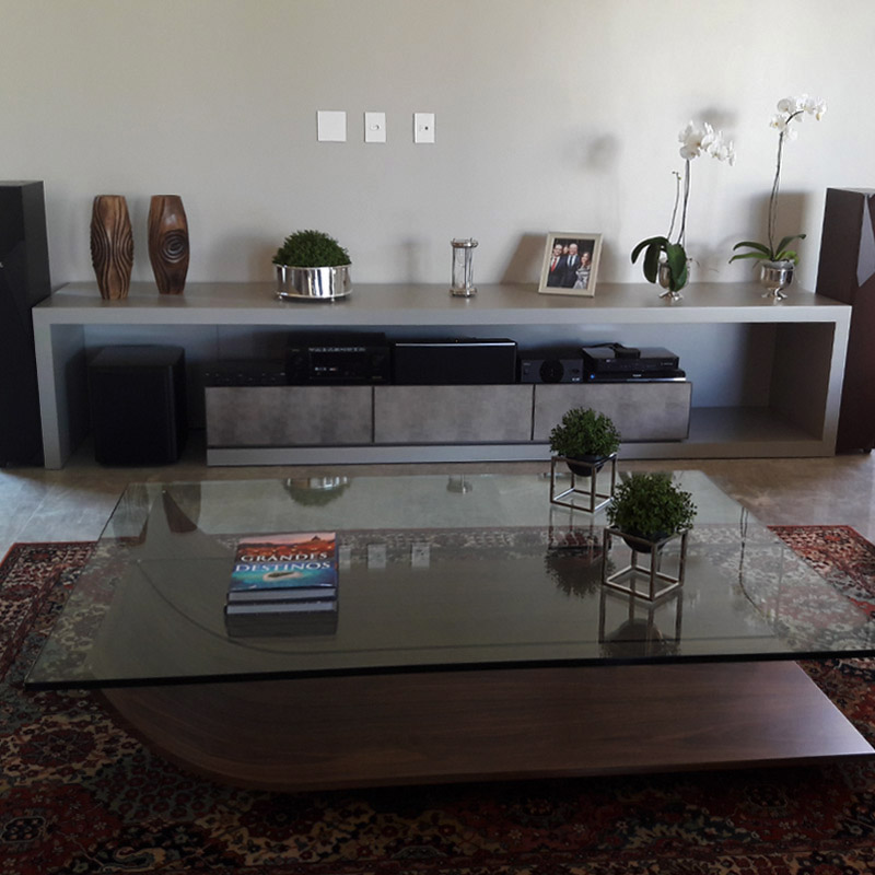 Ao chegar em casa o sensor de presença é ativado e automaticamente a intensidade da luz aumenta, as persianas da sala são abertas e o ar-condicionado ligado. Com um simples toque no controle remoto, o usuário pode acionar a cena do home-theater: a intensidade da luz vagarosamente é reduzida, as cortinas se fecham, a tela desce e o DVD e o projetor são ligados.